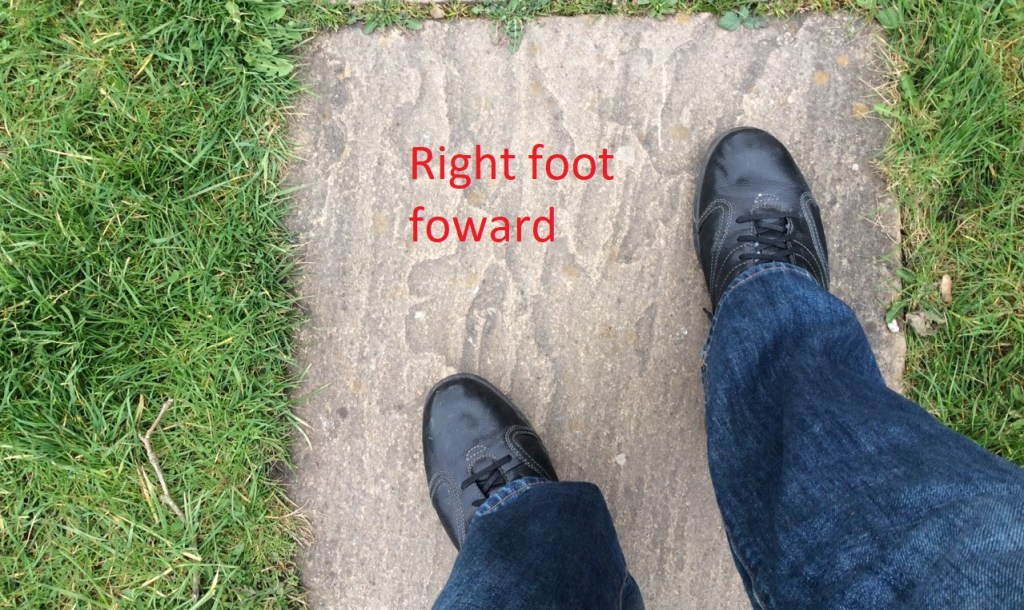 Opposite to above. If your right handed you place you left foot forward and vice versa.